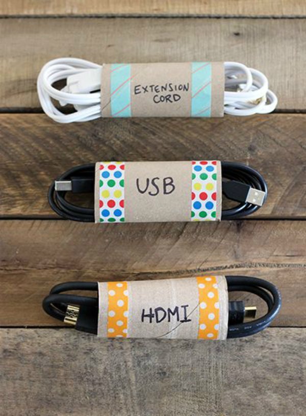 - Y esta idea de almacenar cables es ideal para aquellos que siempre están confundidos y no pueden encontrar el correcto.