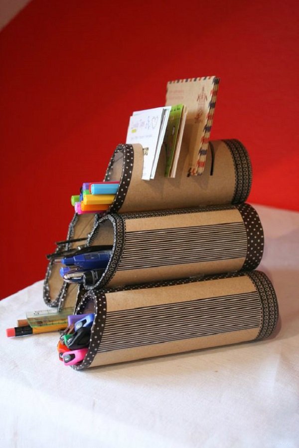 - En primer lugar, una funda de cartón de papel higiénico es un material adaptable para la fabricación de varios organizadores.