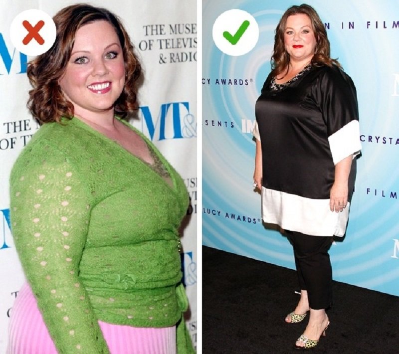 - Los tejidos brillosos no solo llaman la atención, también destacan todos los pliegues gordos en el cuerpo. Para evitar que esto suceda, haz tu elección sobre tejidos de color mate.