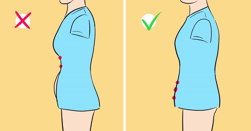 - Comprueba que los botones de la ropa estén justo sobre la parte mas sobresaliente del vientre. De lo contrario, la barriga levantará los bordes laterales de la ropa y será aún más visible.