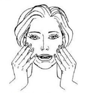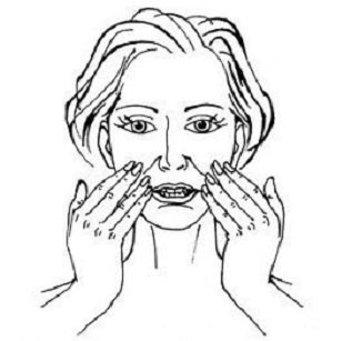 Pon tus palmas en las mejillas, abre la boca en una media sonrisa y sentirás la tensión en los músculos de las mejillas.