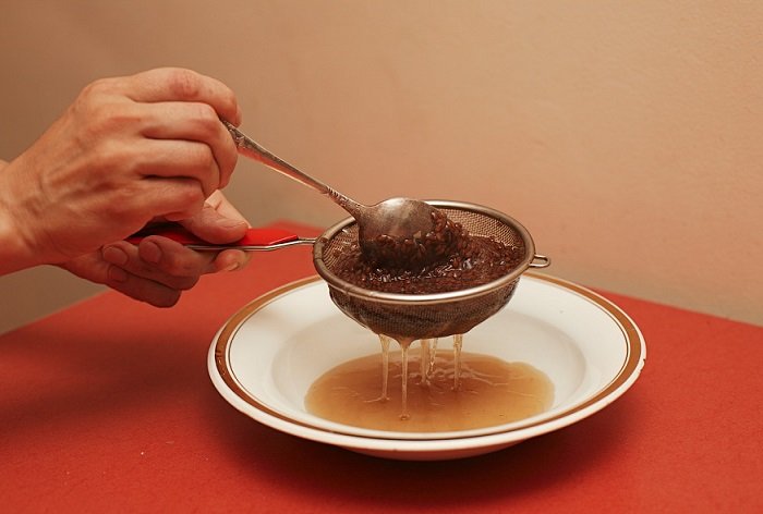En 1 cucharada de kéfir agrega 3 cucharaditas de harina de lino. Por cierto, no es necesario comprar dicha harina en la tienda, se puede moler fácilmente en un molinillo de café.