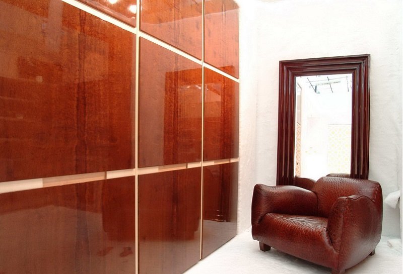 ¿Qué hay de malo en las superficies reflectantes? En las tiendas, hay una gran selección de muebles con superficies brillantes y tensadas, que ahora están de moda. Hanson argumenta que no es tan malo e insípido el uso de muebles espejo, pero hay que tener mucho cuidado. Después de todo, en superficies reflectantes siempre quedan rastros de dedos y otras suciedades, y eso se ve horrible.