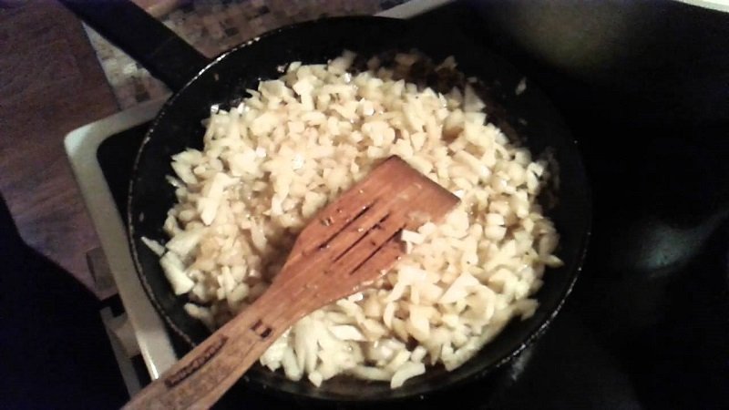- Sofríe las cebollas en una sartén con aceite de oliva.