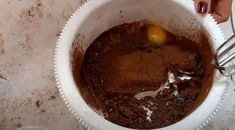 - Tamiza la harina y el cacao en un recipiente hondo, agrega el azúcar, los huevos y la leche.