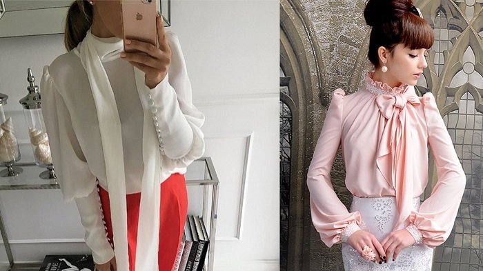 La blusa de moda se ve exquisita y femenina, puedes acompañarla con un collar o simplemente formar un lazo empleando una cinta delgada, al tono con la blusa o de un color de contraste.