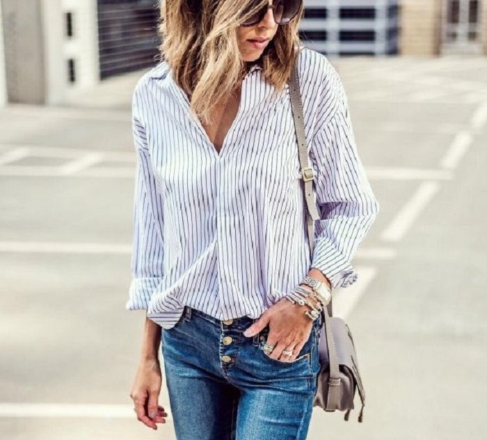 No te olvides de la camisa clásica. Después de todo, con esta forma básica puedes verte muy bien, audaz y moderna.