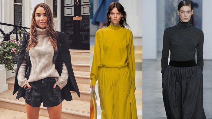Además de los accesorios básicos, se estilan cuellos de tortuga sueltos y de colores brillante. Por ejemplo, los más modernos, según el Instituto de Color Pantone, ultravioleta, también mostaza, burdeos y rojo.