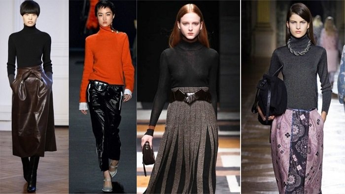 Si hablamos del vestuario básico para la temporada de frío, entonces en el 2018 los cuellos de tortuga serán relevantes. Se verá bien con una chaqueta y una falda con estilo.