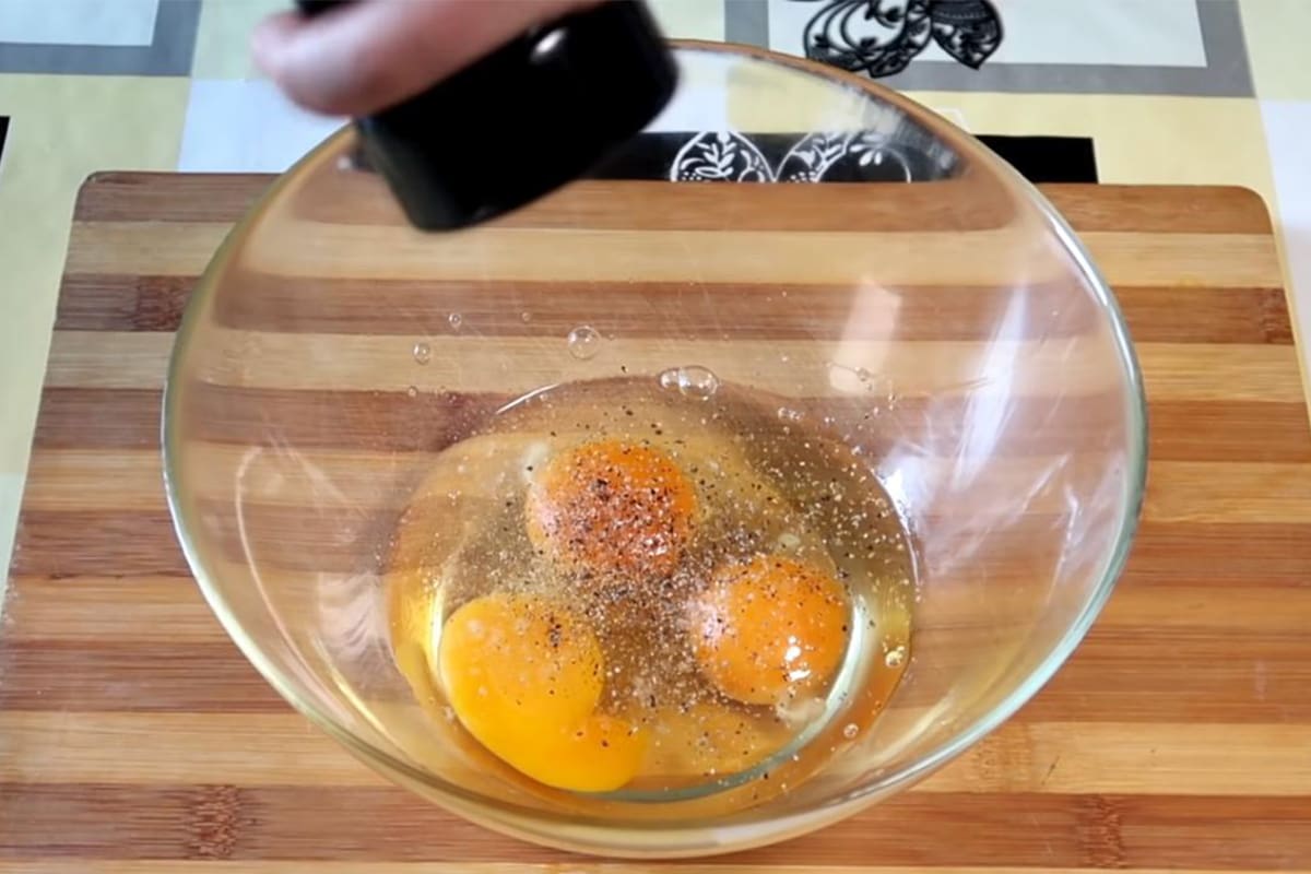 - En primer lugar, echa los huevos en un bol, salpimentéalos al gusto. Luego, bátelos todos con un tenedor.