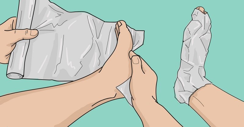 El tratamiento con papel de aluminio, en cuestión, es bastante simple. Envuelve el punto de dolor con lámina de aluminio, por ejemplo, las articulaciones de las piernas. Fija el vendaje mágico con una venda. ¡La lámina debe ser aplicada con la cara brillante hacia el punto de dolor!