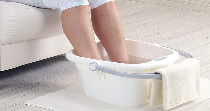 - Espera hasta que la mezcla se haya enfriado a 40-45°C y sumerje los pies en el recipiente durante 15-20 minutos.