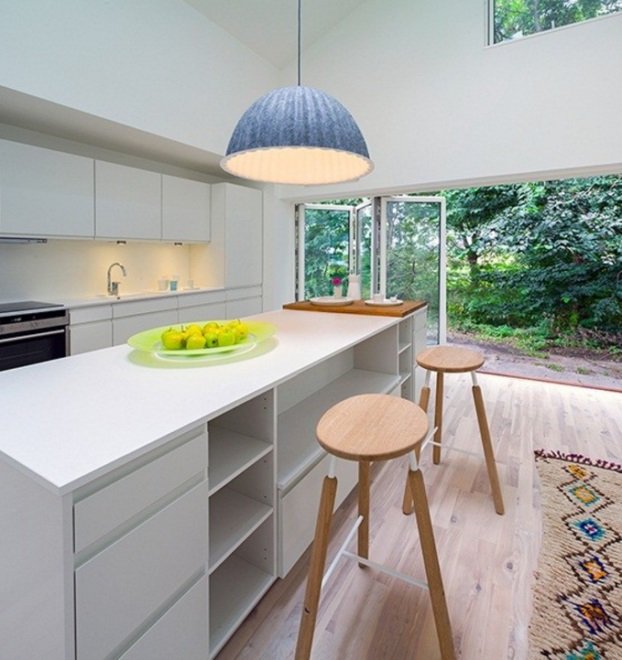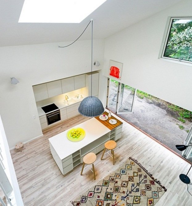 Su interior ha sido decorado al estilo escandinavo y minimalista. Se utilizaron el color blanco como base y madera natural.