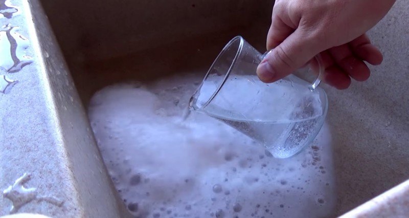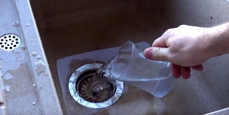 Mezcla 50 ml de vinagre con 300 ml de agua caliente. Echa el líquido al desagüe.