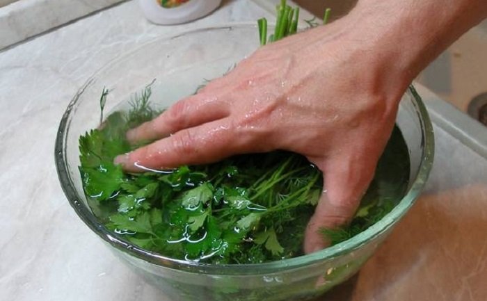 - Cuando lavas hierbas y verduras en un tazón, no eches el agua al fregadero. Simplemente, saca las hierbas lavadas del tazón. La arena y el barro se quedarán en el fondo del tazón, y no sobre las hierbas.