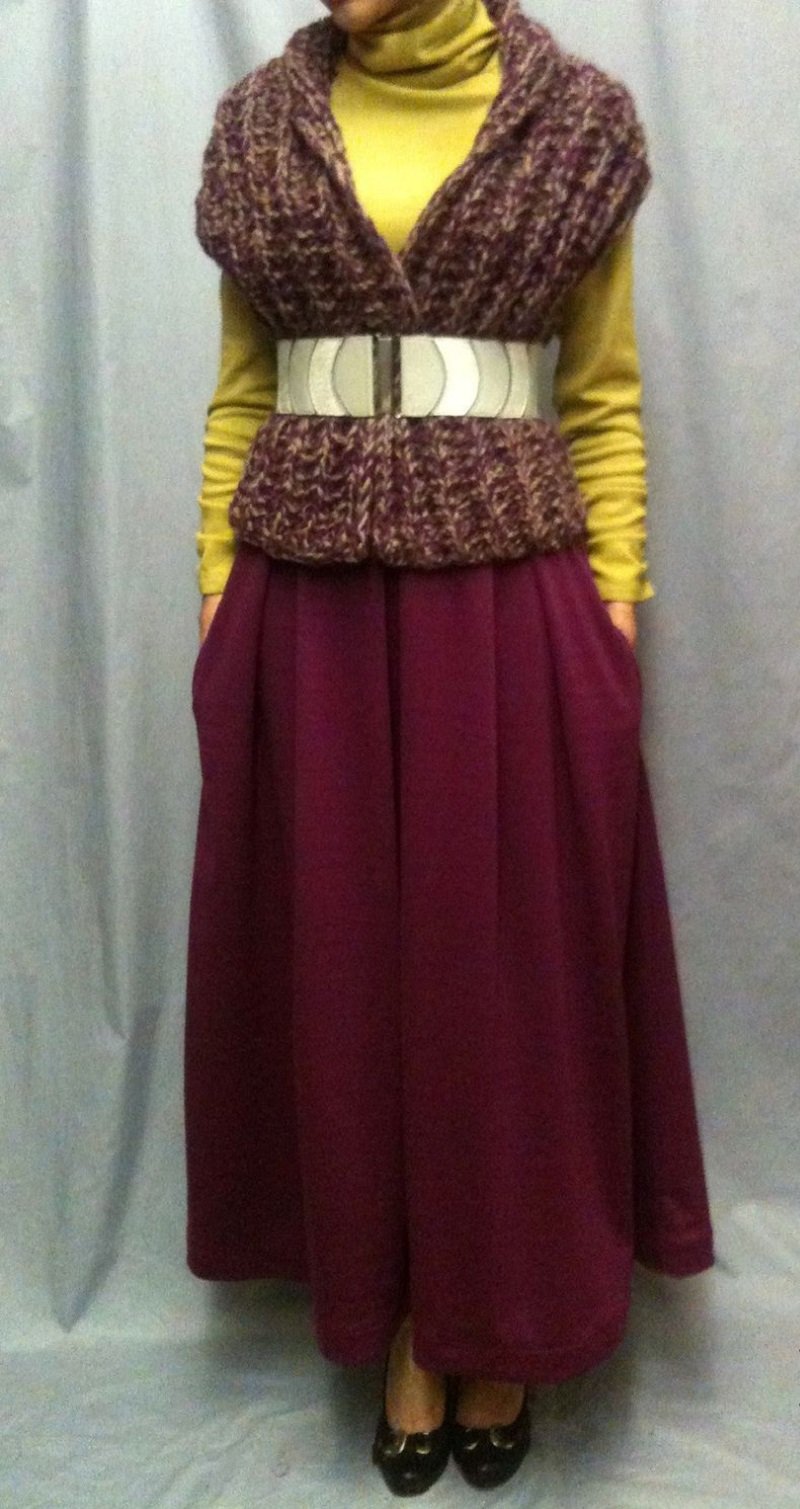 La combinación de una falda larga hasta el piso y una blusa de punto se ve muy descuidada. Para este tipo de falda es mejor elegir algo más ligero, de modo que la imagen se vea más femenina.