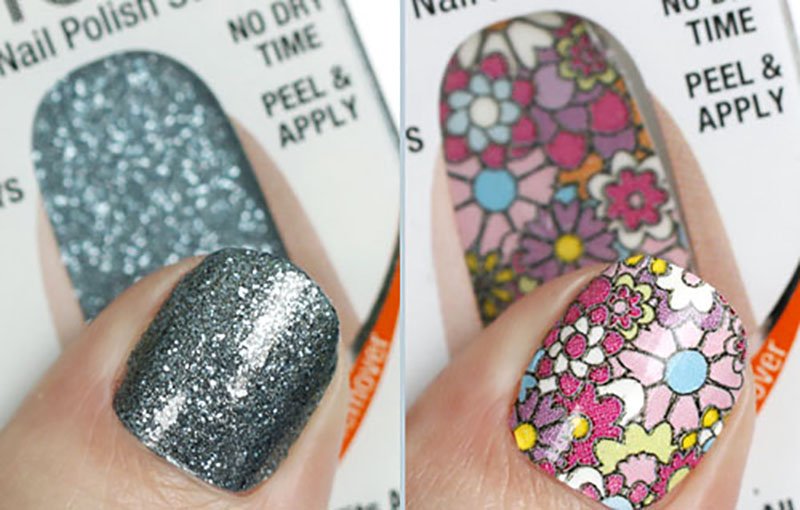 Esta manicura se hace bastante rápido: la pegatina elegida se pega a la uña. Para el secado rápido, se puede poner las uñas bajo una lámpara especial, a continuación, se elimina el exceso con una lima de uñas. Este arte de uñas se puede hacer en casa, y lo más importante es que no es dañino.