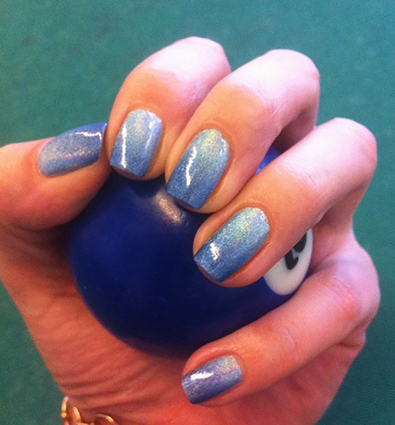 Una excelente solución para ello puede ser el esmalte con lentejuelas grandes – se pegan firmemente a las uñas. Aunque no es fácil retirarlas, pero la resistencia deseada realmente está presente.