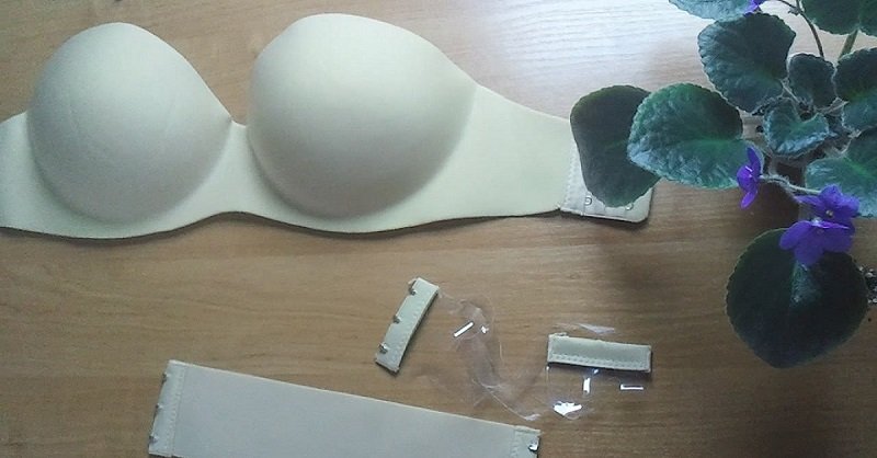 Si deseas usar un vestido con un corte profundo en la espalda, y no tienes un sujetador de silicona, debes esforzarte un poco. Toma una cinta elástica del largo deseado y cósela al sujetador. Fíjate como se muestra en la foto.