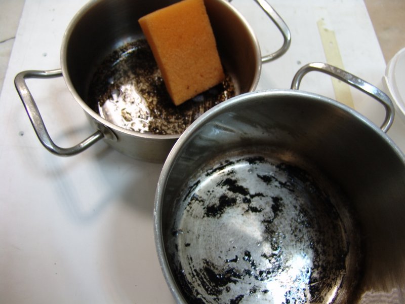 Una sustitución natural de los abrasivos químicos. Por supuesto, contra una sartén muy sucia el café molido no podrá hacer mucho, pero para los sartenes esmaltados de grado medio de suciedad es bastante efectivo.