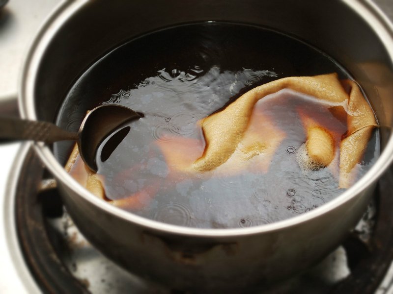 Si los puntos manchados en las toallas de la cocina no desaparecen completamente al lavar, puede pintarlas de un color oscuro, sumergiéndolas en una suspensión de posos de café en ebullición.