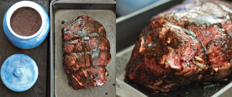 ¡El Cerdo horneado con café es algo muy exquisito! Mezcla el café molido con polvo de jengibre, 7 cucharaditas de pimienta negra molida y sal. Frota esta mezcla sobre la carne (un corte de hasta un kilogramo de peso), envuélvalo en una película de papel alimenticio, y déjelo en la nevera durante 2-3 horas para marinar.Después de esto, fríe la carne en una sartén hasta que se vuelva marrón, y luego hornéala en el horno, cubierto con papel de aluminio, a una temperatura de 180 grados durante 40-50 minutos. 15 minutos antes del final de la cocción, retira la hoja y vierte la carne con el jugo.