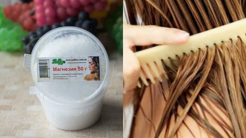 Este compuesto químico es muy bueno para fortalecer y energizar el cabello. Para ello, basta mezclar una cucharada de sulfato de magnesio con la misma cantidad de acondicionador para el cabello. Después del lavado de cabeza, aplica esta mezcla sobre toda la longitud del cabello y déjala actuar por 5 minutos. Luego aclara con abundante agua tibia.