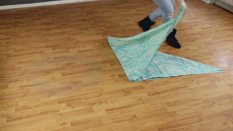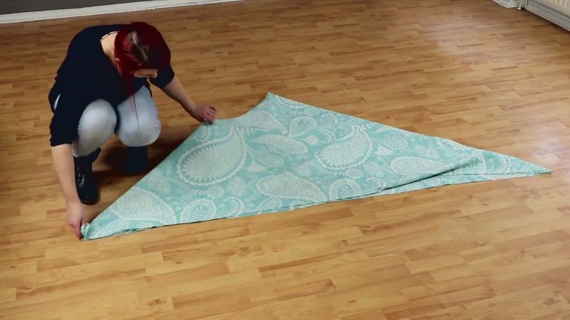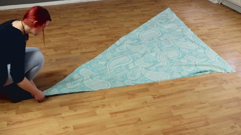 - Dobla el cuadrado de tela en diagonal, para crear un triángulo grande.