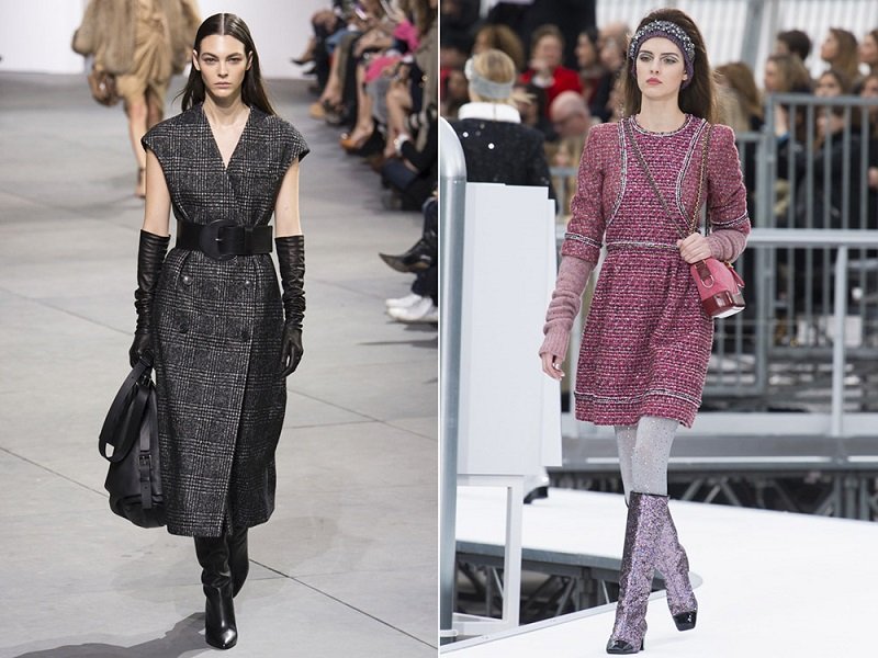 - Los vestidos de lana, tweed y de punto se ven muy bien, combinadas con las botas de otoño. Los famosos estilistas presentaron varios diseños en la escala clásica del tweed, así como en tonos brillantes, que llamaron mucho la atención.