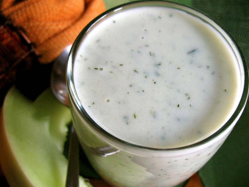 - Coloca las especias y el pepino en el cuenco de una batidora, y viértele la mitad del kéfir.